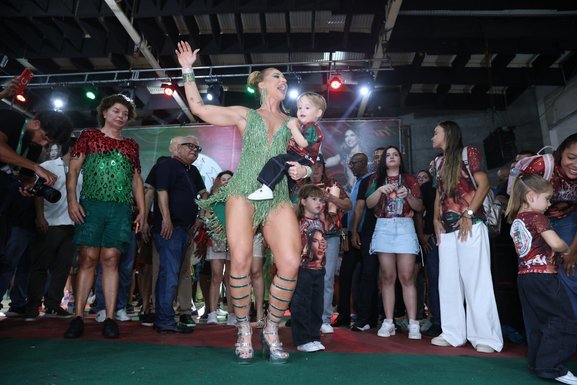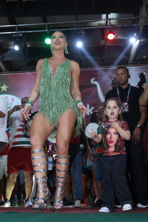 Virginia Fonseca participou de mais um ensaio da Grande Rio, na quadra da escola de samba, na noite da última quarta-feira (27). A rainha de bateria da agremiação foi prestigiada pelos filhos, Maria Alice, Maria Flor e José Leonardo, que  foram o destaque do evento.