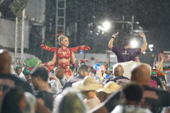 “Ensaio técnico concluído com sucesso e ontem debaixo de chuva! Energia surreal, ver todo mundo ali pelo mesmo propósito, todo mundo feliz, mesmo caindo o mundo de chuva, obrigada a todos os envolvidos mais uma vez, como é MARAVILHOSO viver o CARNAVAL”, disse a influenciadora no Instagram.